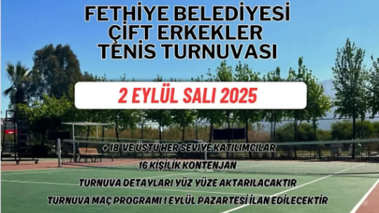 Fethiye Belediyesi, sporun birleştirici gücünü bir kez daha sahaya taşıyor. 2 Eylül 2025 Salı günü düzenlenecek olan Çift Erkekler Tenis Turnuvası, saat 17.00 ile 23.00 arasında Fethiye Belediyesi tenis kortlarında gerçekleştirilecek. Turnuva, hem sporcular hem de izleyiciler için heyecan dolu bir akşam vaat ediyor.
