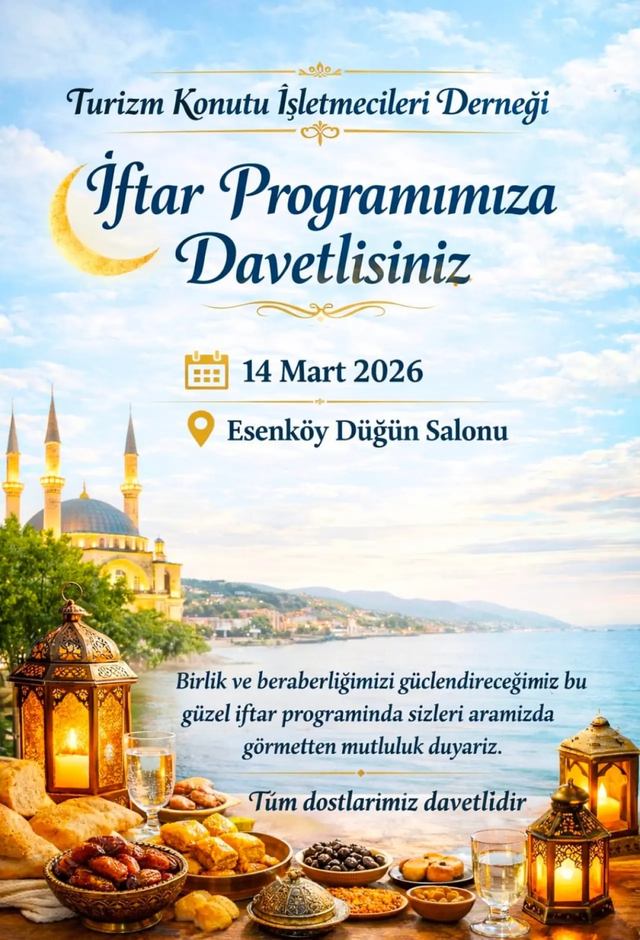 Muğla'nın Fethiye ilçesi, Ramazan ayının manevi atmosferiyle birleşen sosyal etkinliklere ev sahipliği yapıyor. Turizm Konutu İşletmecileri Derneği, 14 Mart 2026 tarihinde Fethiye Esenköy Mahallesi'nde düzenleyeceği iftar organizasyonu ile bölge halkını aynı sofrada buluşturmaya hazırlanıyor. Fethiye iftar programları arasında yerini alan bu etkinlik, dayanışma ruhunu ön plana çıkarıyor.