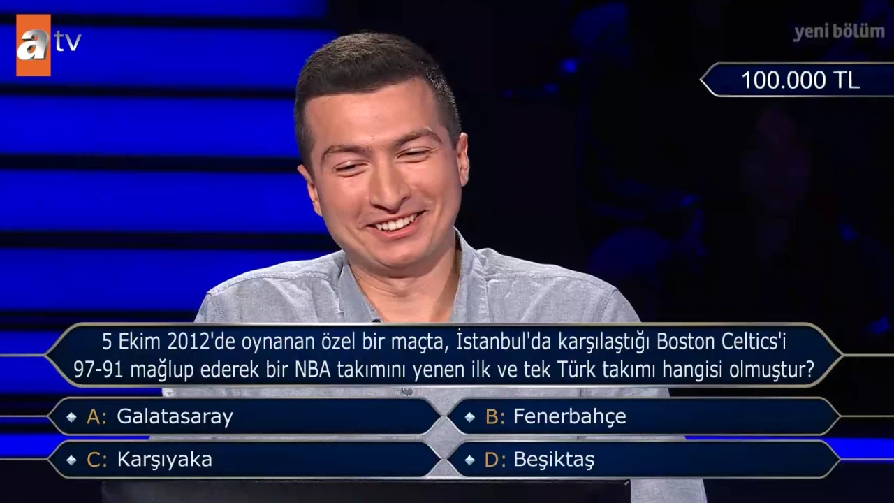 ATV ekranlarında yayınlanan Kim Milyoner Olmak İster yarışmasında 9 Ekim 2025 Perşembe günü dikkat çeken bir spor sorusu soruldu. Yarışmacıya yöneltilen “5 Ekim 2012'de oynanan özel bir maçta, İstanbul'da karşılaştığı Boston Celtics'i 97-91 mağlup ederek bir NBA takımını yenen ilk ve tek Türk takımı hangisi olmuştur?” sorusu hem stüdyoda hem sosyal medyada basketbol tutkunlarının ilgisini çekti.