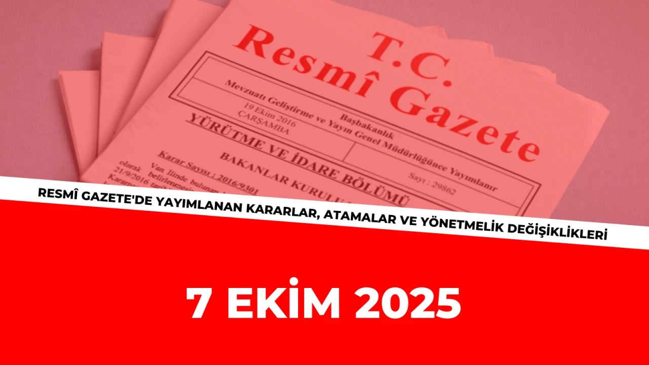 Türkiye Cumhuriyeti Resmî Gazetesi’nin 7 Ekim 2025 tarihli sayısında yürütme, idare, yargı ve ilan bölümlerine ait önemli kararlar yayımlandı. Günün öne çıkan başlıkları arasında Cumhurbaşkanlığına vekâlet işlemi, yeni yönetmelikler, ihracat tebliğinde değişiklik ve Anayasa Mahkemesi kararı yer aldı.