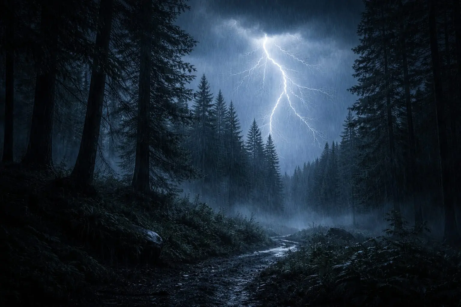 Gökyüzü aniden kararır, rüzgâr ağaçların arasından uğuldamaya başlar ve ilk şimşek çaktığında orman bir anlık aydınlanır, sonra her şey yeniden karanlığa gömülür. Ama o kısa aydınlık anında, insan sadece ağaçları görmez. Sanki bir şeyler de onu izliyordur. Yağmurun cama vuran sesi giderek artar, gök gürültüsü duvarlara çarpar gibi yankılanır ve insanın içini tarif edemediği bir huzursuzluk kaplar. Çünkü bazı geceler doğa sadece ses çıkarmaz; bir şeyleri hatırlatır. Ve o hatırlanan şey her zaman masum değildir. Karanlık, dışarıdan içeri sızarken, insan en çok kendi içinden korkmaya başlar.