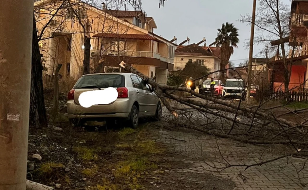 İhbar üzerine olay yerine gelen Köyceğiz Belediyesi ekipleri, otomobilin üzerine devrilen ağacı keserek kaldırmak için çalışma başlattı. Fırtınanın etkisiyle kökünden sökülen ağacın altında kalan araçta ciddi hasar oluştuğu gözlendi.