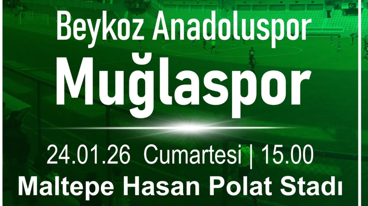 Muğlaspor'un Beykoz Anadoluspor deplasmanındaki mücadelesi 24 Ocak 2026 Cumartesi günü saat 15:00'da başlayacak. Karşılaşma, sporseverler için dijital platformlar üzerinden naklen ekranlara getirilecek.