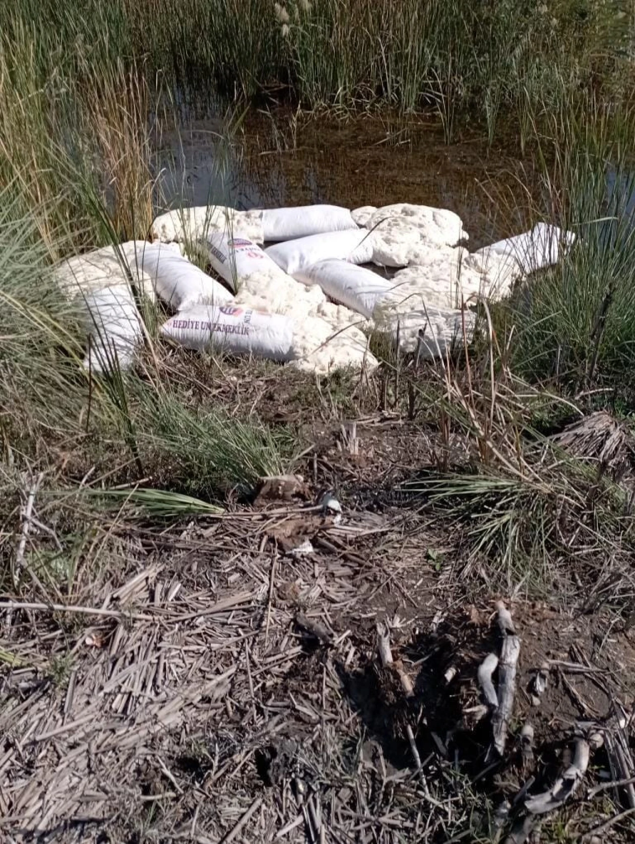 Çuvallarla dökülen unlar, suyla temas ettikten sonra göl yüzeyinde yoğun bir tabaka oluşturdu. Görüntülerde, gölün belirli bölgelerinde beyaz kütlelerin oluştuğu net şekilde görülüyor.