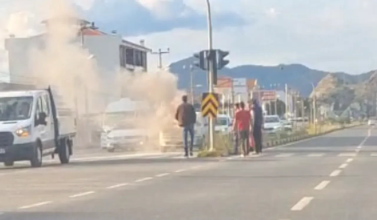 Muğla’nın Ortaca ilçesinde, Dalaman yönünden gelen bir araç Yerbelen Mevkii ışıklarında durduğu sırada bilinmeyen bir nedenle yanmaya başladı. Olay, 1 Aralık 2025 Pazartesi günü saat 15:55 civarında meydana geldi. Görgü tanıkları, aracın durduğu anda motor bölümünden dumanlar yükseldiğini ve kısa sürede alevlerin sardığını bildirdi.