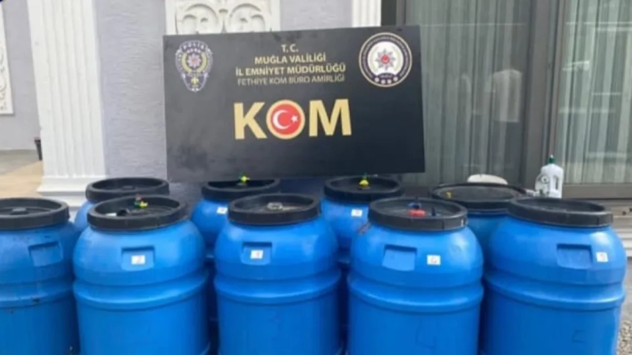 Muğla İl Emniyet Müdürlüğü Kaçakçılık ve Organize Suçlarla Mücadele Şube Müdürlüğü ekipleri, Fethiye’de sahte içki üretimi ve satışımüstakil evini depo olarak kullanarak el yapımı şarap ürettiği
