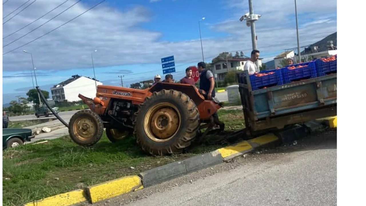 Cant fırladı, traktör kaldırıma çıktı, yaralı yok
