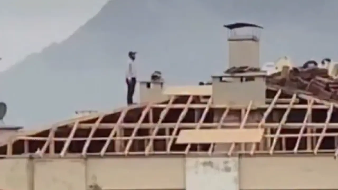 Bir inşaat işçisi, 10 Kasım sabahı çatıda çalışırken siren sesleriyle birlikte saygı duruşuna geçti